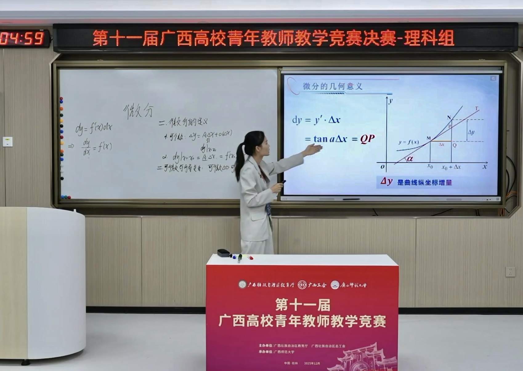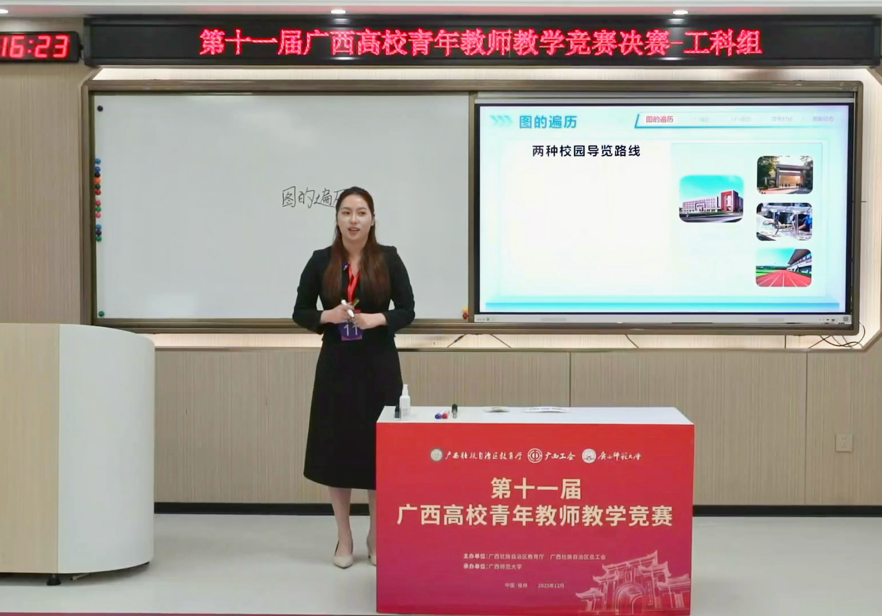 12月5日,我校数字科技学院的梁金艳老师和陈姿锟老师,作为青年教师代表,在领队老师的陪同下,前往桂林广西师范大学,参加第十一届全区高校青年教师教学竞赛(区赛)决赛,开启了一场检验教学技能与专业素养的重要征程。
