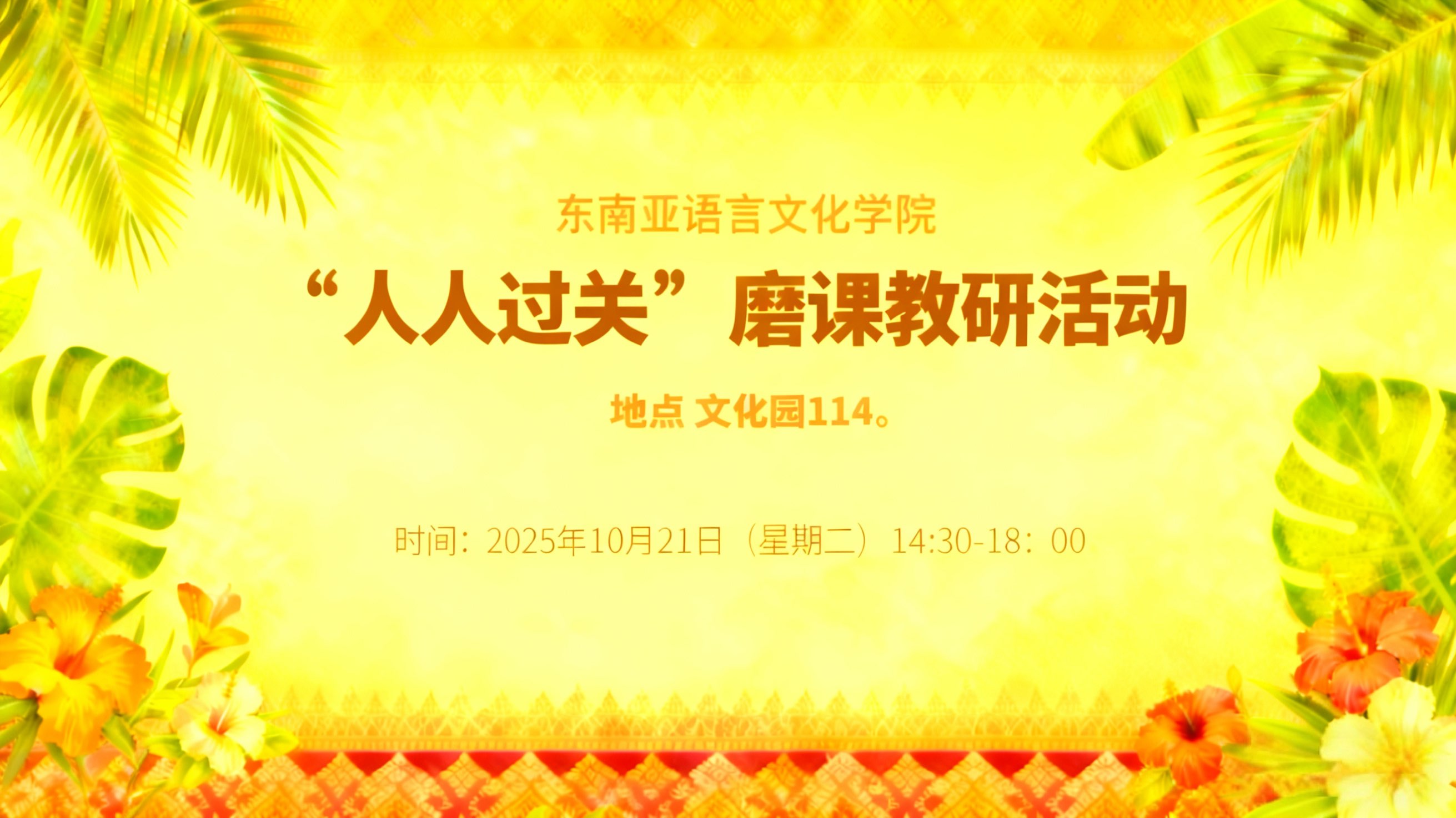 东南亚语言文化学院诚邀您参加2025年“人人过关”磨课教研活动,活动预告如下: