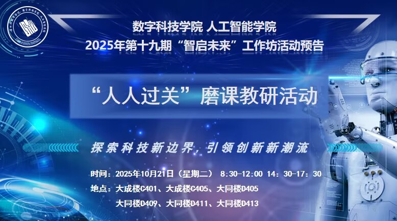 数字科技学院 人工智能学院诚邀您参加2025年“人人过关”磨课教研活动,活动预告如下: