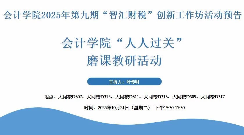 会计学院诚邀您参加2025年“人人过关”磨课教研活动,活动预告如下: