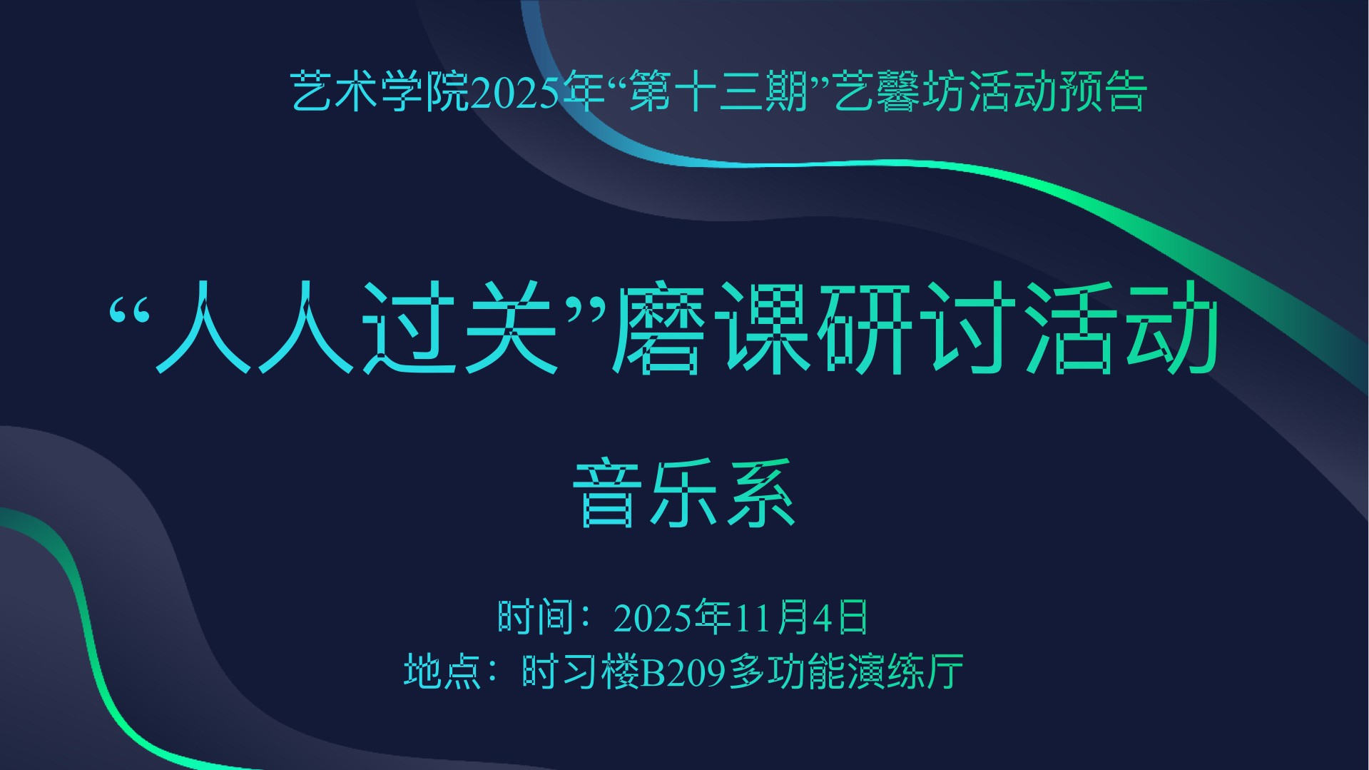 艺术学院诚邀您参加2025年第十三期“艺馨坊”活动,预告如下: