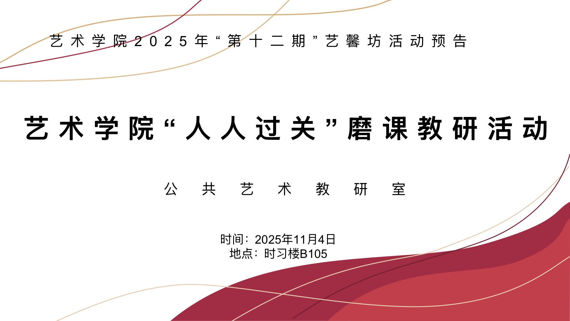 艺术学院诚邀您参加2025年第十二期“艺馨坊”活动,预告如下: