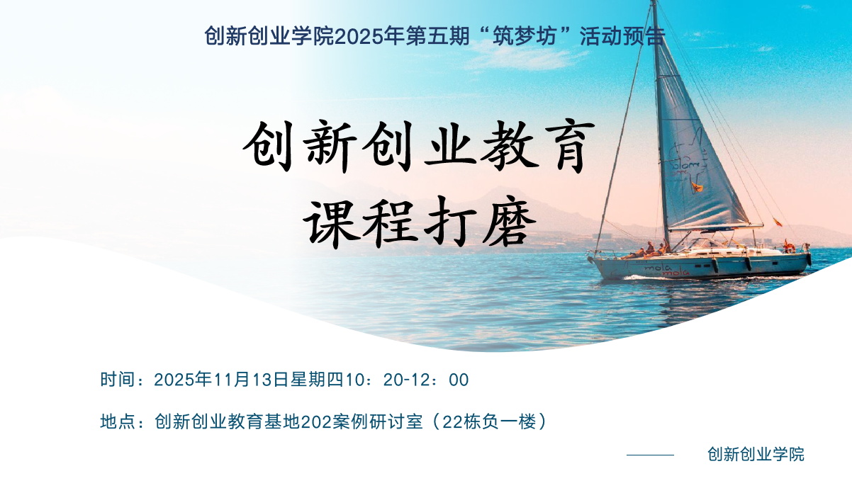 创新创业学院诚邀您参加2025年第五期“筑梦坊”活动,预告如下: