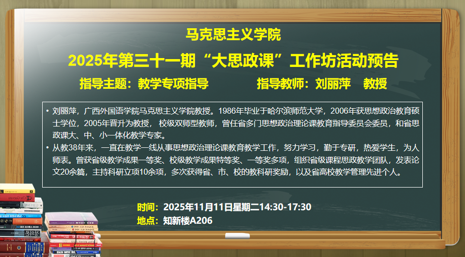 马克思主义学院诚邀您参加2025年第三十一期“大思政课”工作坊活动,预告如下: