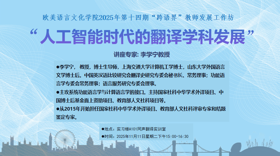 欧美语言文化学院诚邀您参加2025年第十四期“跨语界”教师发展工作坊活动,预告如下: