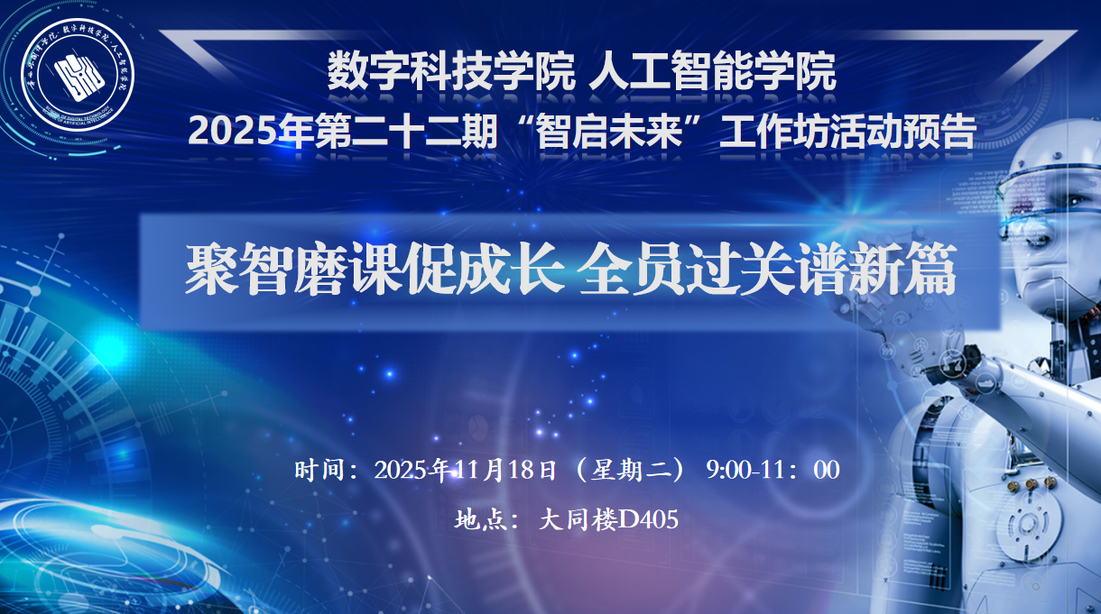 数字科技学院 人工智能学院诚邀您参加2025年第二十二期“智启未来”工作坊活动,预告如下: