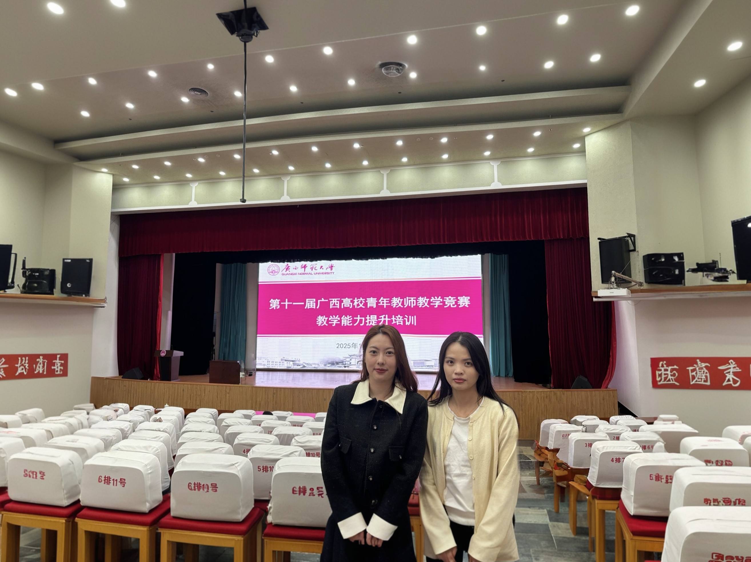 为精进教学技能、备战第十一届全区高校青年教师教学竞赛决赛,11 月 16 日,我校数字科技学院陈姿锟、梁金艳两位老师赴广西师范大学育才校区,参加由自治区教育厅、自治区总工会主办的教学能力提升培训及赛前展示活动。