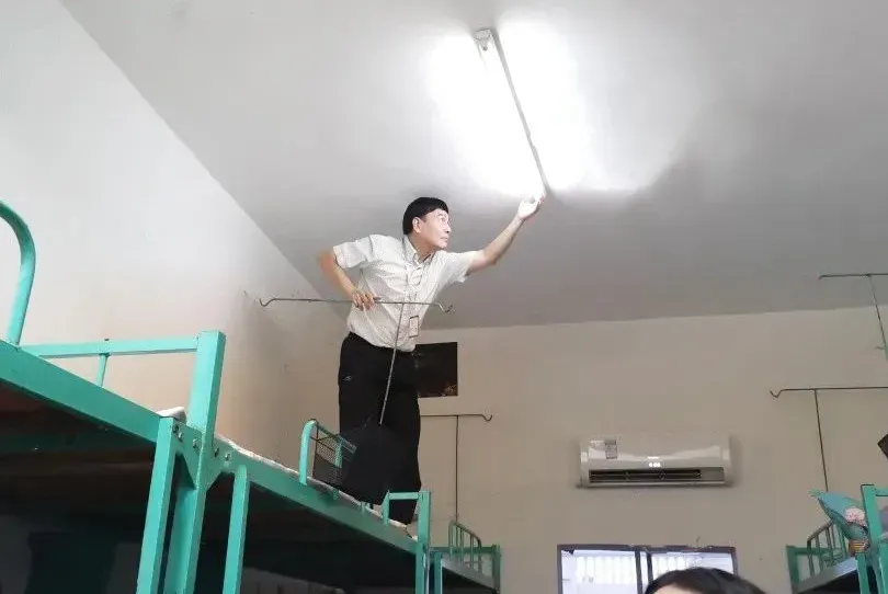 爱生如子 无私奉献,覃海生院长亲自帮同学们维修不亮的灯管