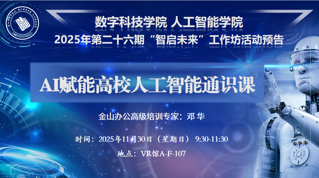 数字科技学院 人工智能学院诚邀您参加2025年第二十六期“智启未来”工作坊活动,预告如下: