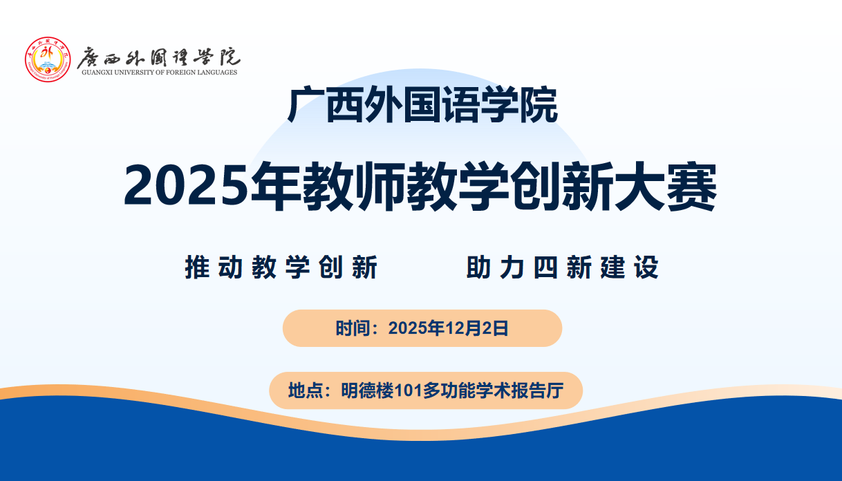 广西外国语学院教师发展中心诚邀您参加2025年教师教学创新大赛,预告如下: