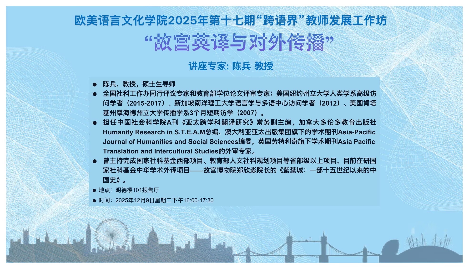 欧美语言文化学院诚邀您参加2025年第十七期“跨语界”教师发展工作坊活动,预告如下: