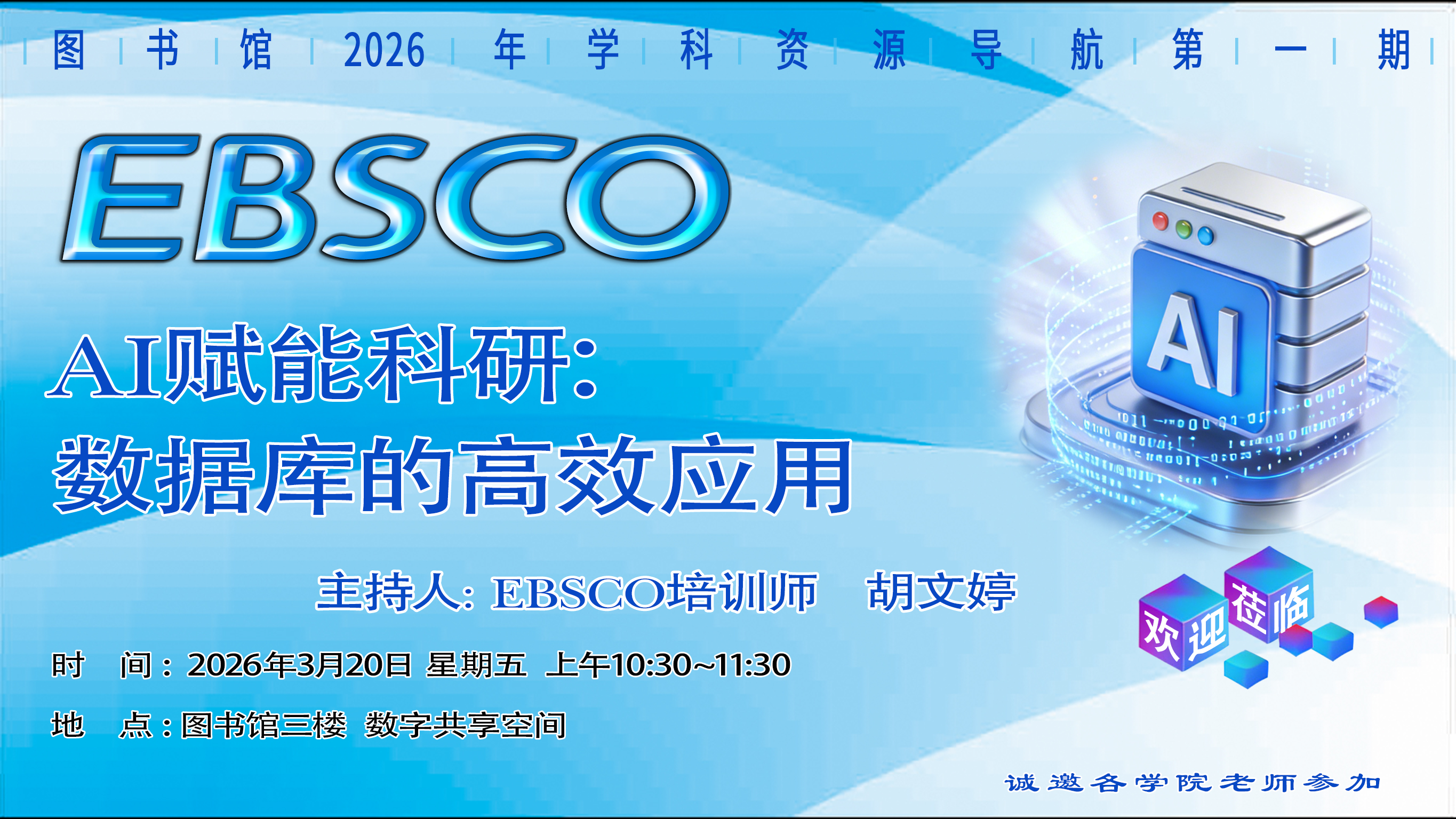 图书馆诚邀您参加2026年学科资源导航第一期活动,预告如下: