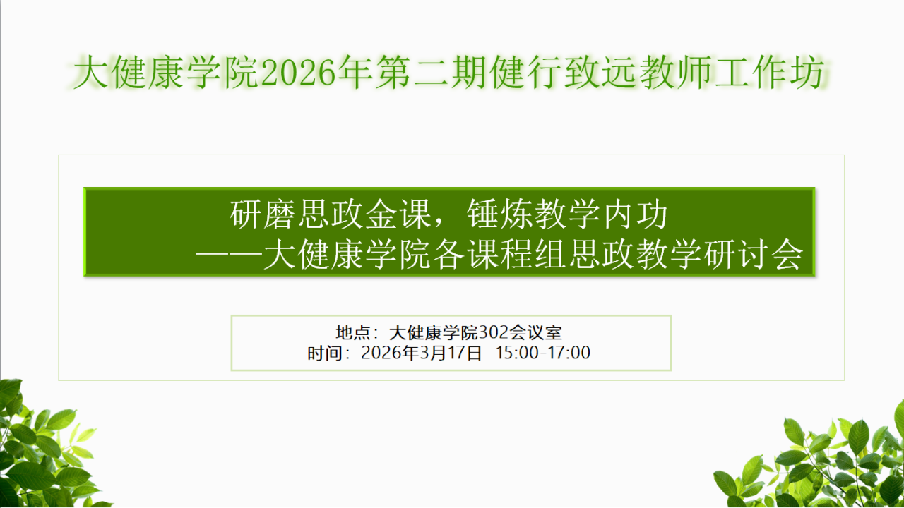 大健康院诚邀您参加20026年第二期健行致远教师工作坊活动,预告如下: