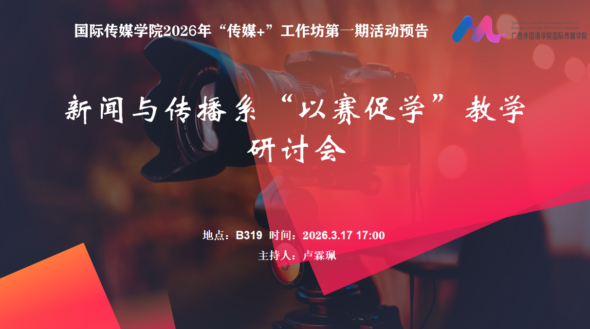 讲座主题:新闻与传播系“以赛促学”教学研讨会