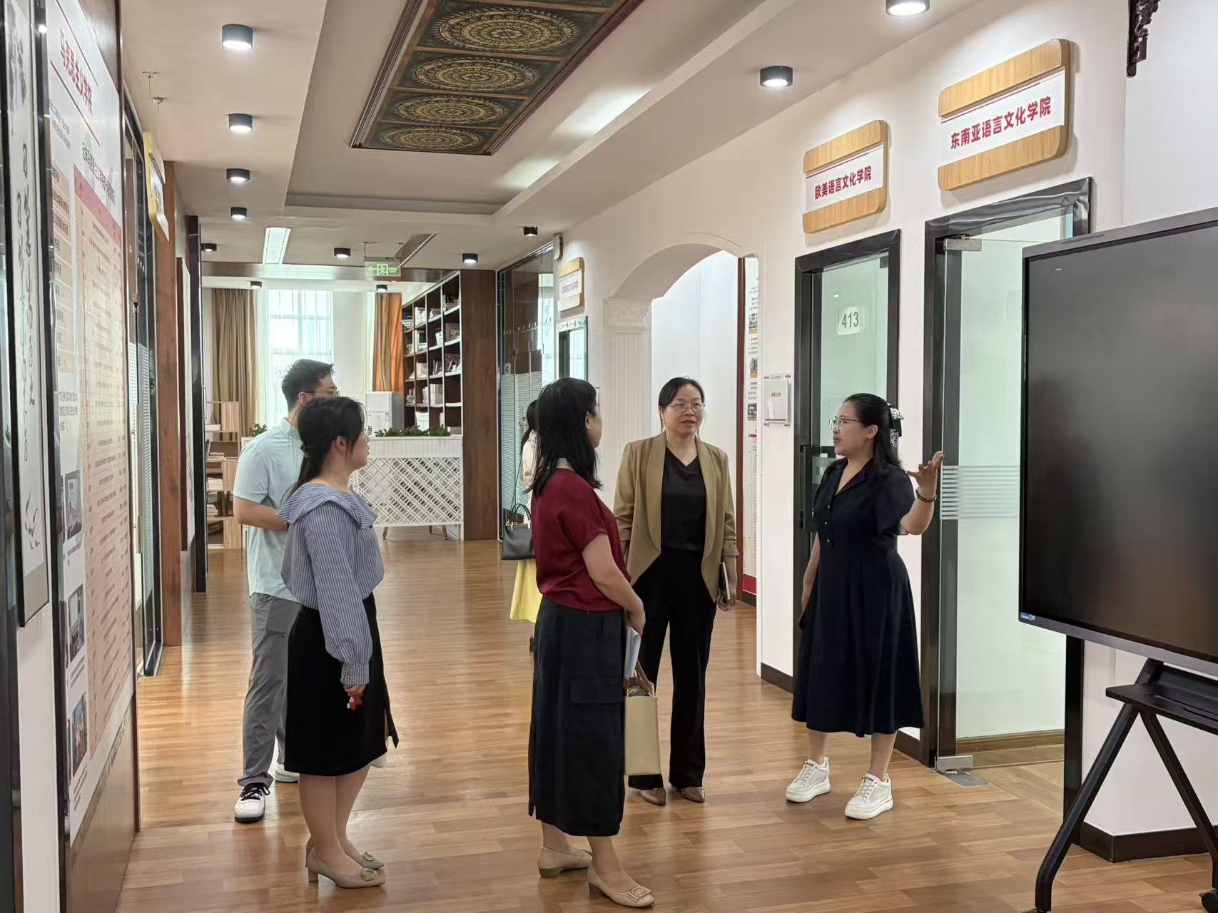 双方在东南亚语言文化学院工作坊开展交流座谈,围绕中心构建、教师核心建设、教师服务体系、规章制度建设、线上资源库建设等方面展开深入研讨。我校教师发展中心领导表示,广西机电职业技术学院在双师型教师建设等方面成果显著,我校将虚心学习借鉴。